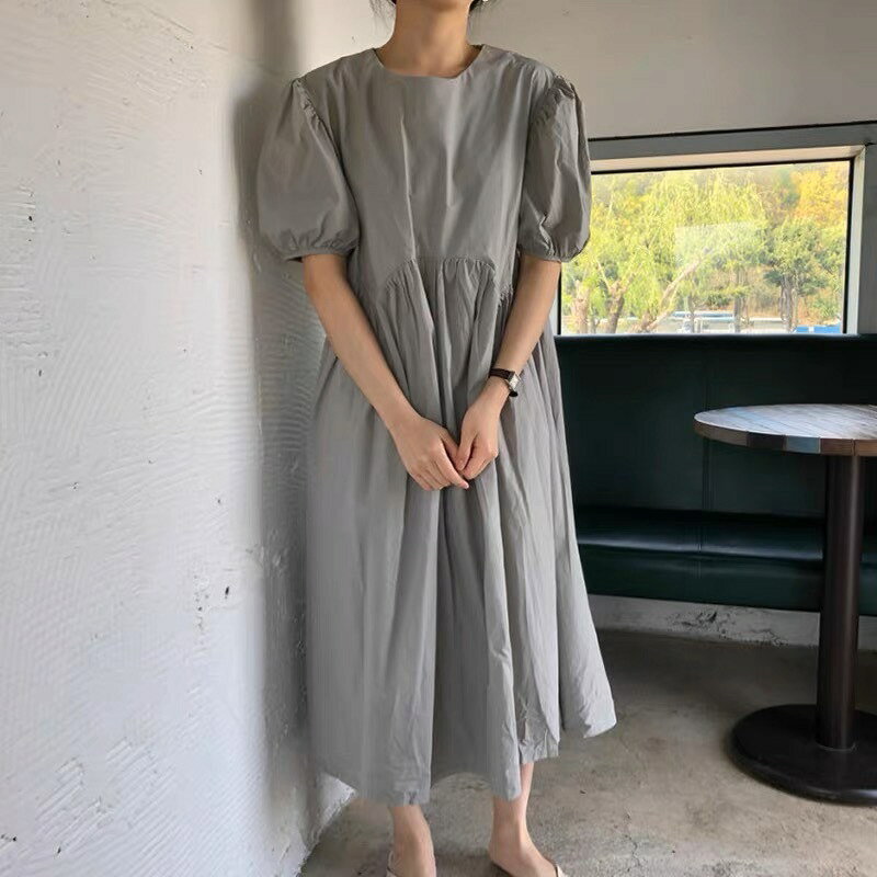 レディース ワンピース 春 夏 秋 半袖 パフスリーブワンピース ロング丈 フェミニン きれいめカジュアル カジュアル 秋冬 フリーサイズ ホワイト グレー a3920