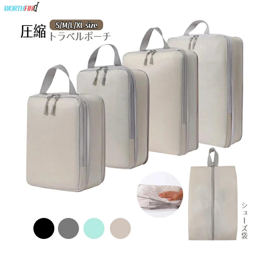 DSDCDJ旅行用圧縮袋トラベルポーチ旅行圧縮バッグ5点セットシューズバッグ付き圧縮で衣類スペース小物入れ衣類仕分け収納スペース節約スーツケース軽量出張旅行修学旅行便利グッズ