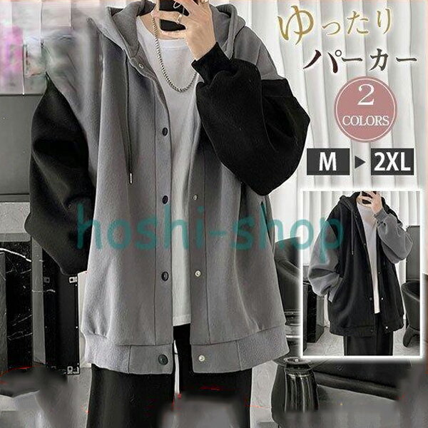 M-5XL パーカー バイカラー おしゃれ メンズ プルオーバー フード付き 裏ボア 裏起毛 暖かい ビッグサイズ 大きいサイズ カジュアル トップス 長袖 秋冬 春秋 原宿系 ビター系