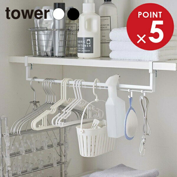 山崎実業 吊り下げ収納 tower タワー 伸縮棚下収納ハンガー 選べるカラー: ホワイト 5646 / ブラック 5647 | 棚板 洗濯機上 ランドリー 収納 引っ掛け ポール シンプル モダン
