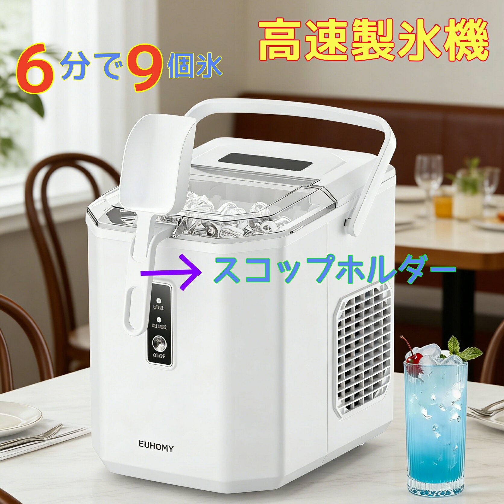 製氷機 家庭用 商業用 最短6分!製氷器 製氷 高速製氷 氷サイズ2種類 自動製氷機 製氷器 時短調理器具 省スペース 自動洗浄機能 自動製氷 簡単操作洗浄 小型 家庭 氷 アイス コンパクト