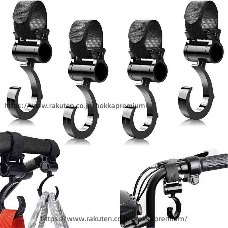 4 個 セット ベビーカー フック 360 度 回転 ベビーカーフック 多機能 ベビーカーバックル ベビーカー 回転 フック ベビーカー ママ バッグ おむつ バッグ 財布 フック
