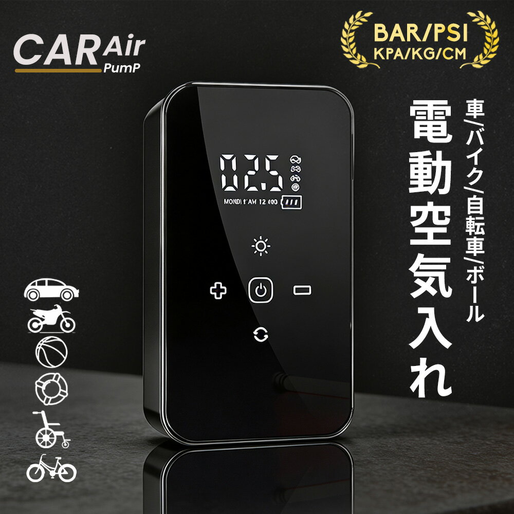 SGJ&SOFT 電動空気入れ バイク 車 自転車 エアーポンプ 電動エアコンプレッサー PSE認証済充電式 コードレス ポータブル 自動停止 最大圧力150PSI Type-C