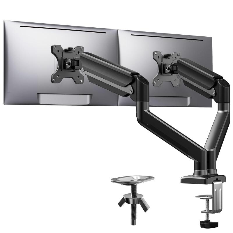 モニターアーム 2画面 デュアルモニターアーム(13-32インチ/耐荷重8kg)ディスプレイアーム VESA100x100 多角度調整 クランプ&グロメット式 人間工学設計