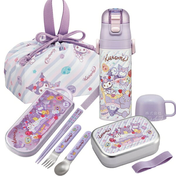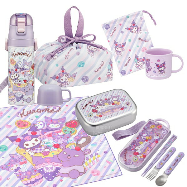 クロミ 26 お買得10点セット 丸型ランチボックス2段 フォーク付 箸&箸箱 巾着 2WAY水筒 コップ コップ袋 レジャーシート おしぼり ランチクロス シール容器3P