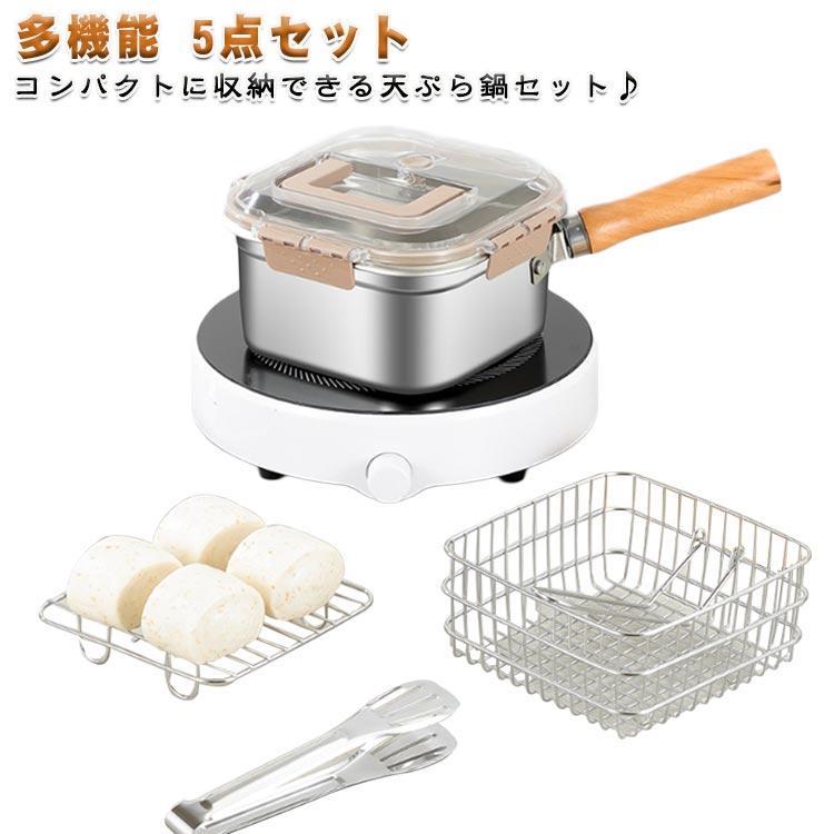 【スーパーSALE10%OFF】麺料理鍋セット 業務用 店舗用 ラーメン鍋 そば鍋 茹麺鍋セット おでん鍋 多機能 ガス火用 IH対応 ステンレス鋼製 湯切りザル付 (5ッ切)
