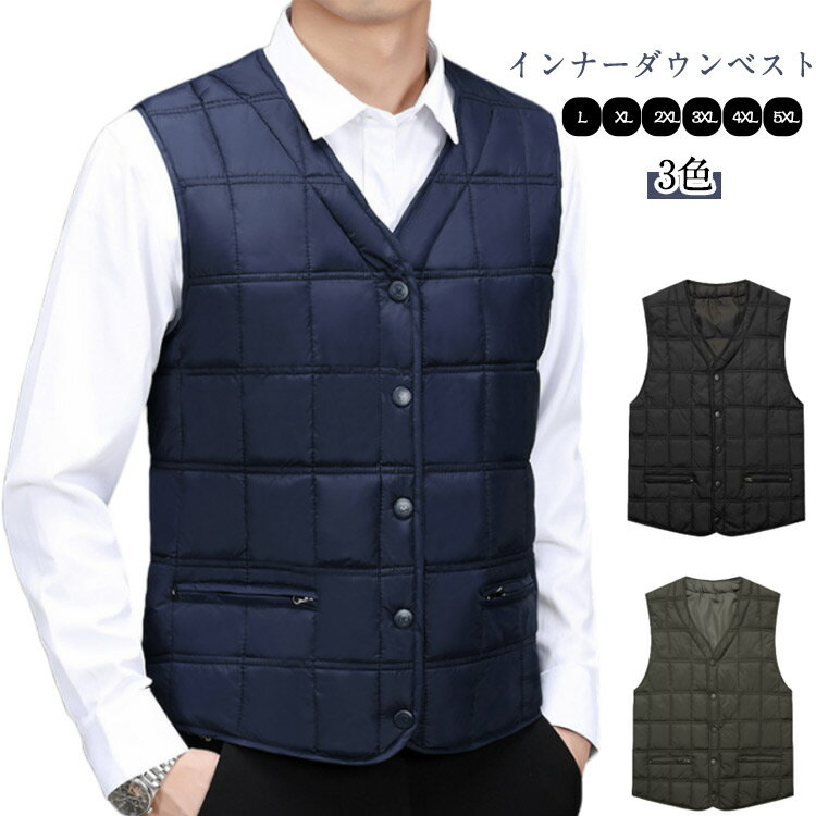 ダウンベスト メンズ 軽量 暖かい Vネック フロントジッパー 前開き フロントボタン インナーダウン 撥水 インナーベスト ダウン 中綿ベスト ジレベスト ノースリーブ アウター ダウンジャケット