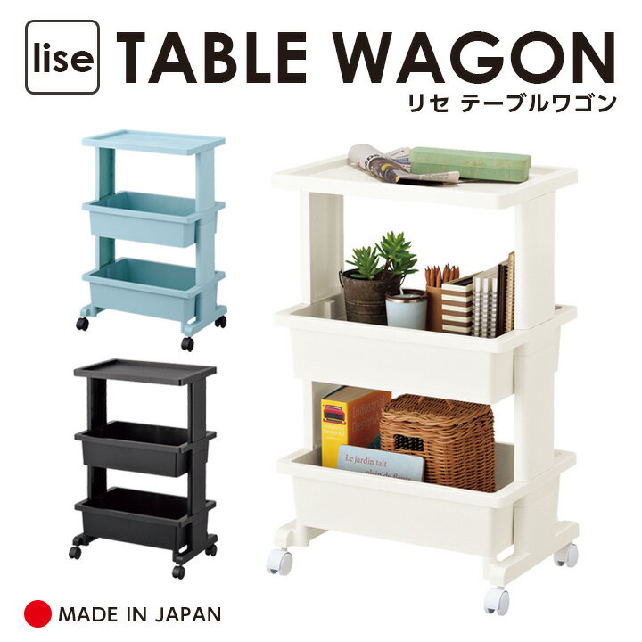 リセ テーブルワゴン 収納ワゴン キッチンワゴン ランドリーワゴン ワゴン ラック 収納 テーブル 3段 Lise キャスター付き 便利 オシャレ かわいい シンプル 組立式