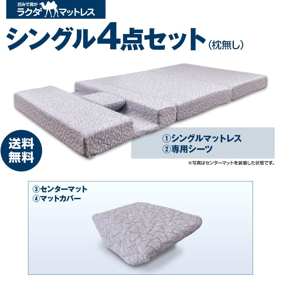 【送料無料】ラクダマットレス シングル4点セット 高反発ウレタン 凹みポケット 血流改善 肩こり 肩痛 横向き 横寝 うつ伏せ 寝返り 寝不足 体圧解消 肩腕保護