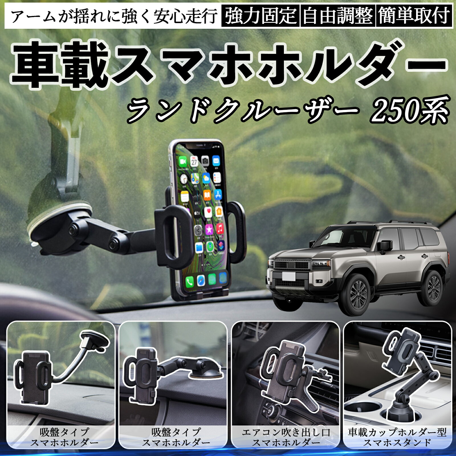 【ポイント10倍 送料無料】トヨタ ランドクルーザー 250系 車載ホルダー スマホホルダー スマホスタンド 吸盤式 超強力吸盤 吹き出し口 折りたたみ式 自由調節 TiCar