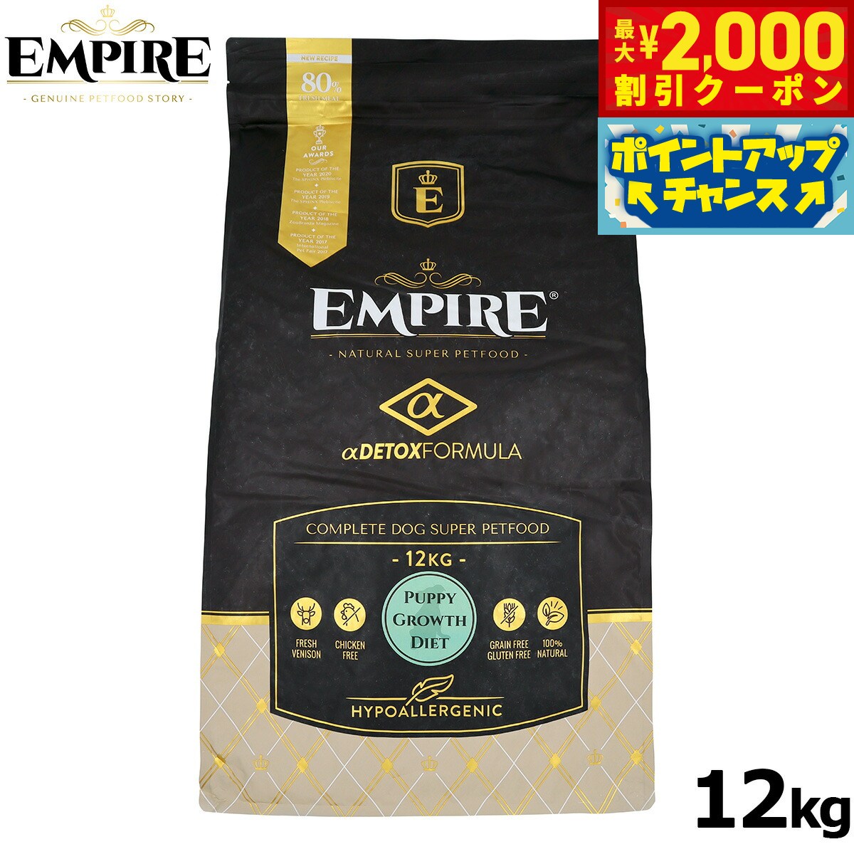 【最大2000円OFFクーポン!&店内ポイント最大52倍!本日限定!】エンパイア ドッグフード パピーグロース 小粒 12kgジビエ 無添加 グレインフリー 鹿肉 100%天然素材