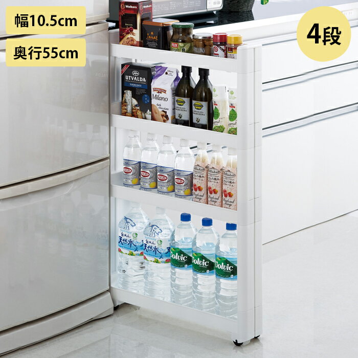 キッチンワゴン スリム キャスター付き 4段 隙間収納 スマートワゴン Fit W100 幅10.5cm 奥行55cm 日本製 省スペース スリムワゴン 隙間ラック キッチン収納