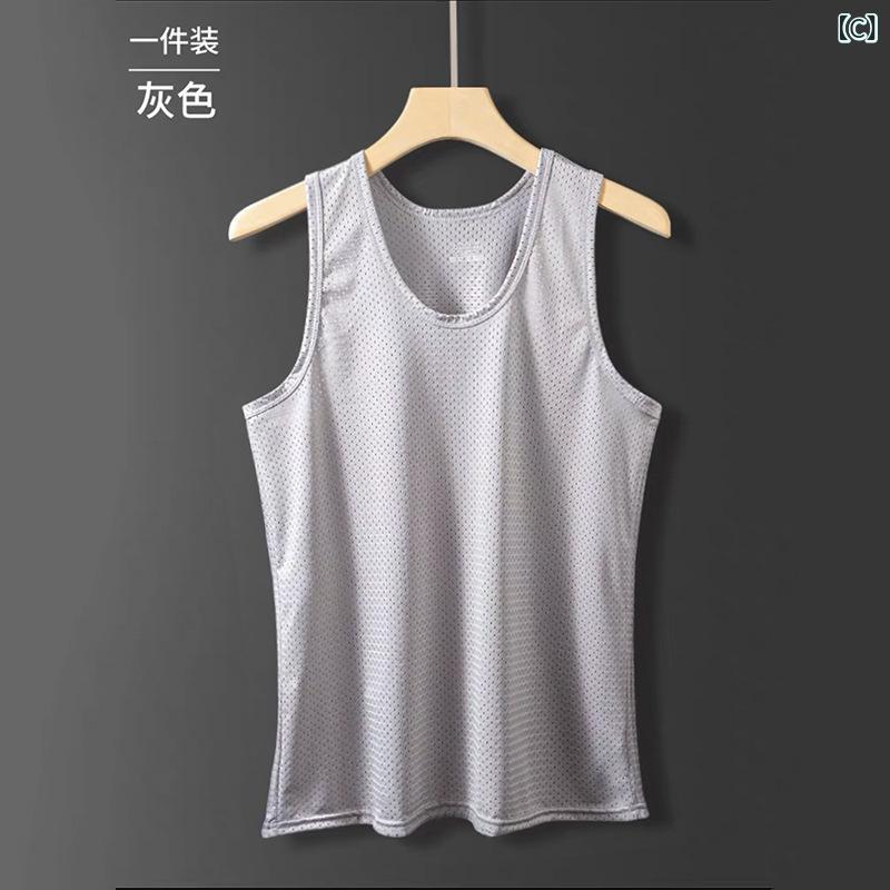 メンズ タンクトップ 男性用 メッシュ 接触冷感 ノースリーブ トップス スポーツ トレーニング ウェア 薄手 軽量 吸湿速乾 無地 ブラック ホワイト グレー ネイビー