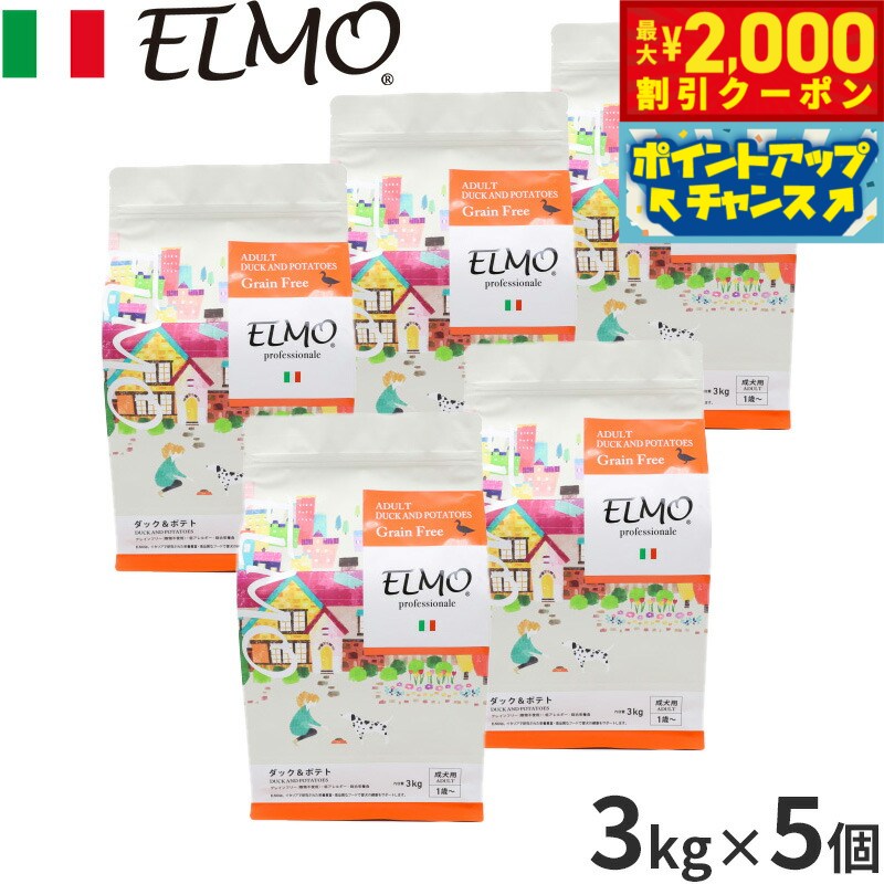 【最大2000円OFFクーポン!&店内ポイント最大52倍!本日限定!】エルモ ELMO ドッグフード アダルト ダック&ポテト (低GI) プロフェッショナーレ 3kg×5個 無添加 小型犬 成犬