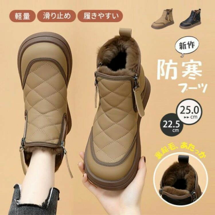 スノーブーツ レディース ジッパー スノーシューズ アウトドア 防寒ブーツ ウィンターブーツ スノーシューズ 防水 防滑 ショートブーツ 雪用靴 裏起毛 暖かい 厚底 軽量 通勤通学 楽ちん 40代