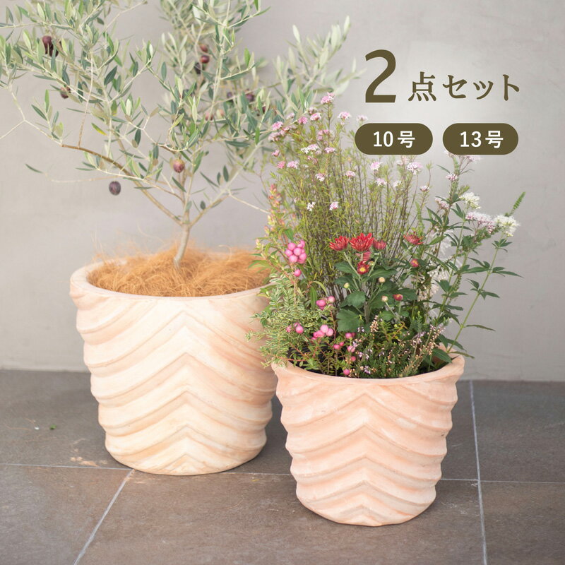 【植木鉢】【テラコッタ】テラクレマ ベイルド 2点セット (10/13号) ≪おしゃれな植木鉢 陶器 シンプル ガーデニング 庭 大きい 大型テラコッタ 素焼き鉢系 セール対象1≫