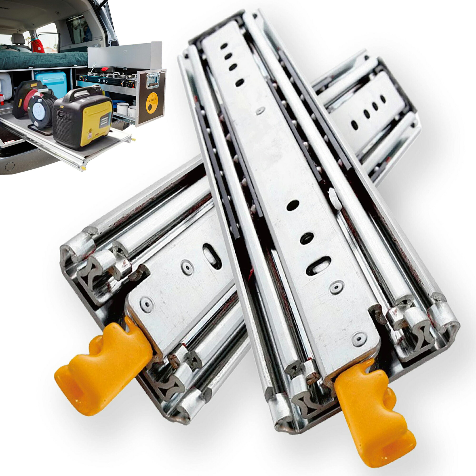 【19/20時~買い物マラソン★2倍p】引き出しスライドレール 車改造レール 超重量用 左右1セット DIY スライドレール ロック機能付き 頑丈設計 棚 収納 改装用レール