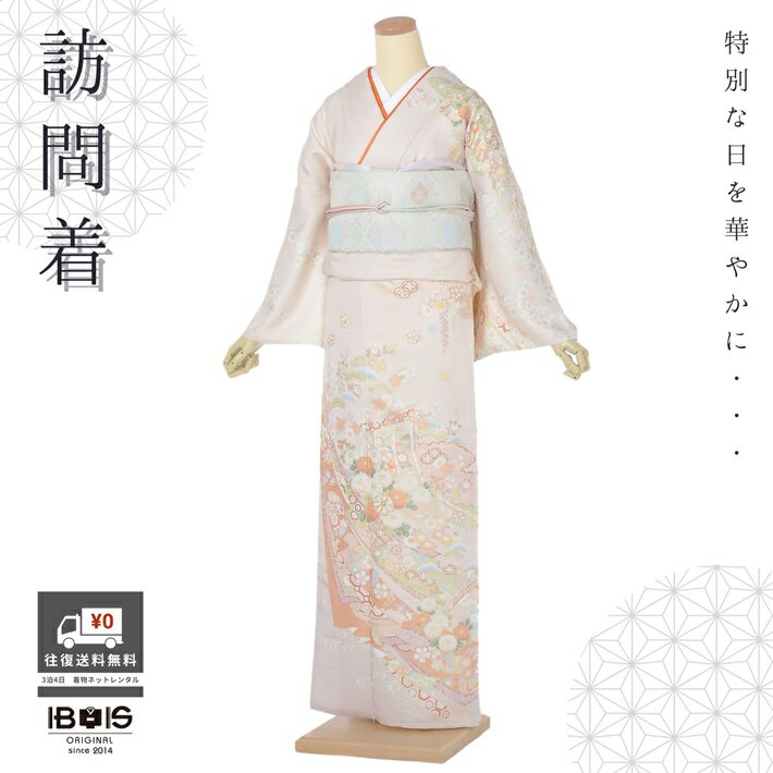 【レンタル】 訪問着 レンタル 訪問着レンタル フルセット レンタル訪問着 レンタル着物 着物レンタル 正絹 クリーム 吉祥文様 149cm~170cm位まで 8AD373