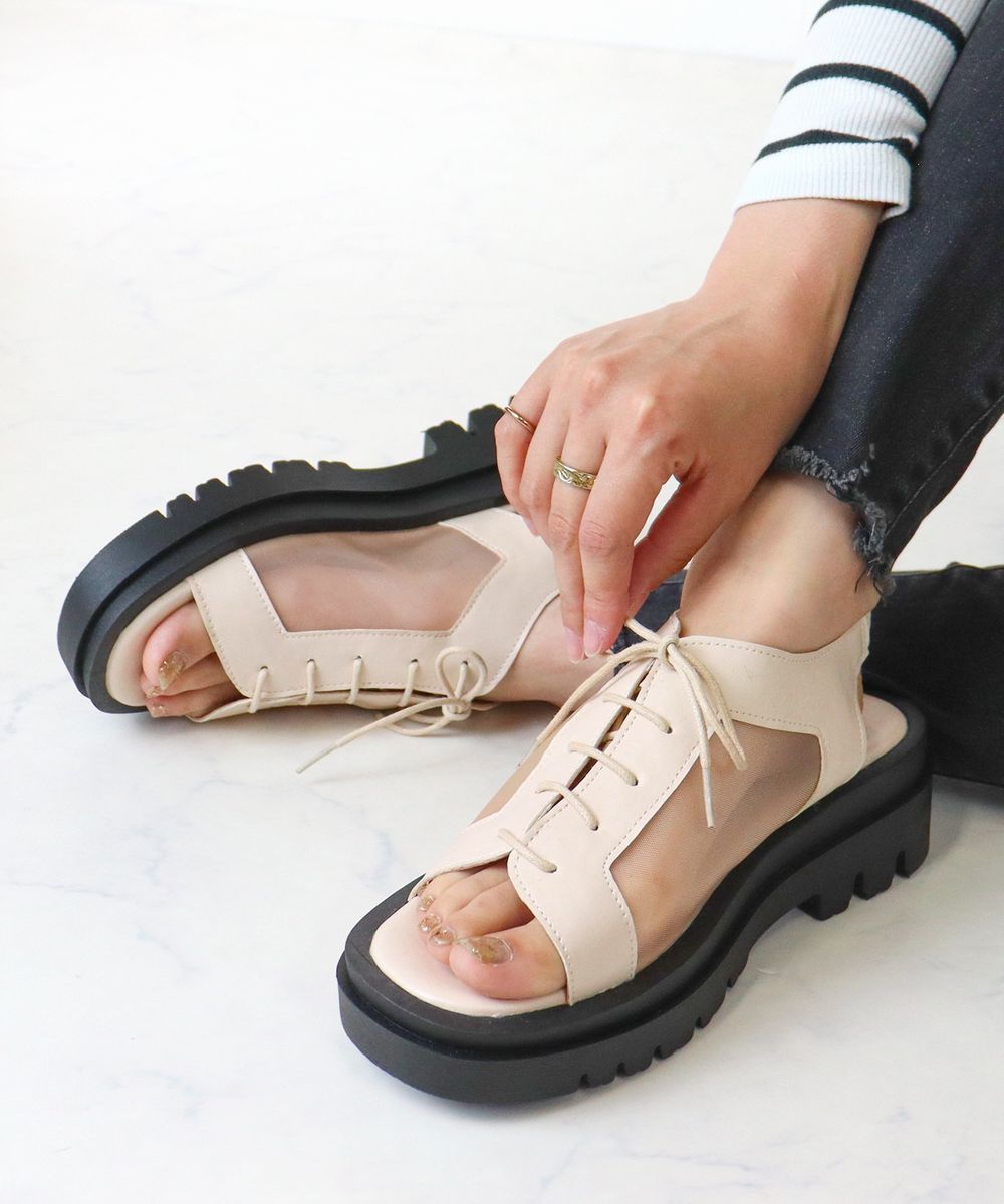 【SALE/60%OFF】OPAQUE.CLIP ギャザーフリルベルトウェッジソールサンダル オペークドットクリップ シューズ・靴 サンダル ブラック ホワイト ピンク