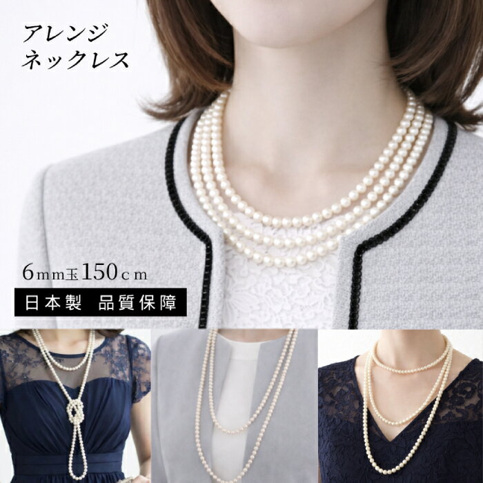 6mm玉パール150cmロングネックレス 100%国内製造、ガラスベースに天然素材から抽出したパールエッセンス7回塗り仕上げ 結婚式、冠婚葬祭、パーティーなどにも 日本製