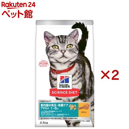 キャットフード インドア 室内 猫用 成猫 1〜6歳 チキン アダルト ドライ(2.5kg×2セット)【ヒルズ サイエンスダイエット】[キャットフード アダルト]
