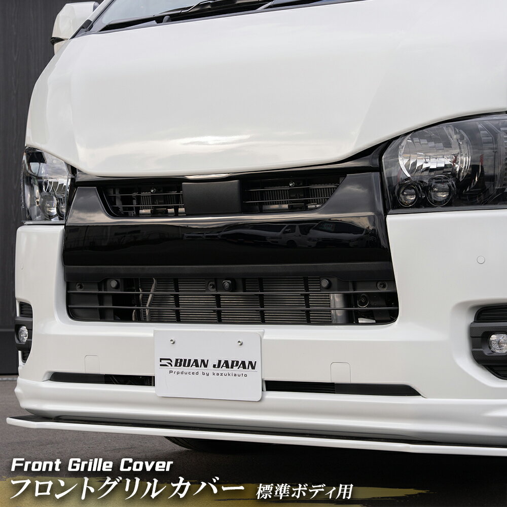 【フロントグリルカバー】 標準ボディ用 ハイエース カスタムパーツ フロント スーパーGL ダークプライム フロントグリル 塗装不要 ブラック AES製 ドレスアップ