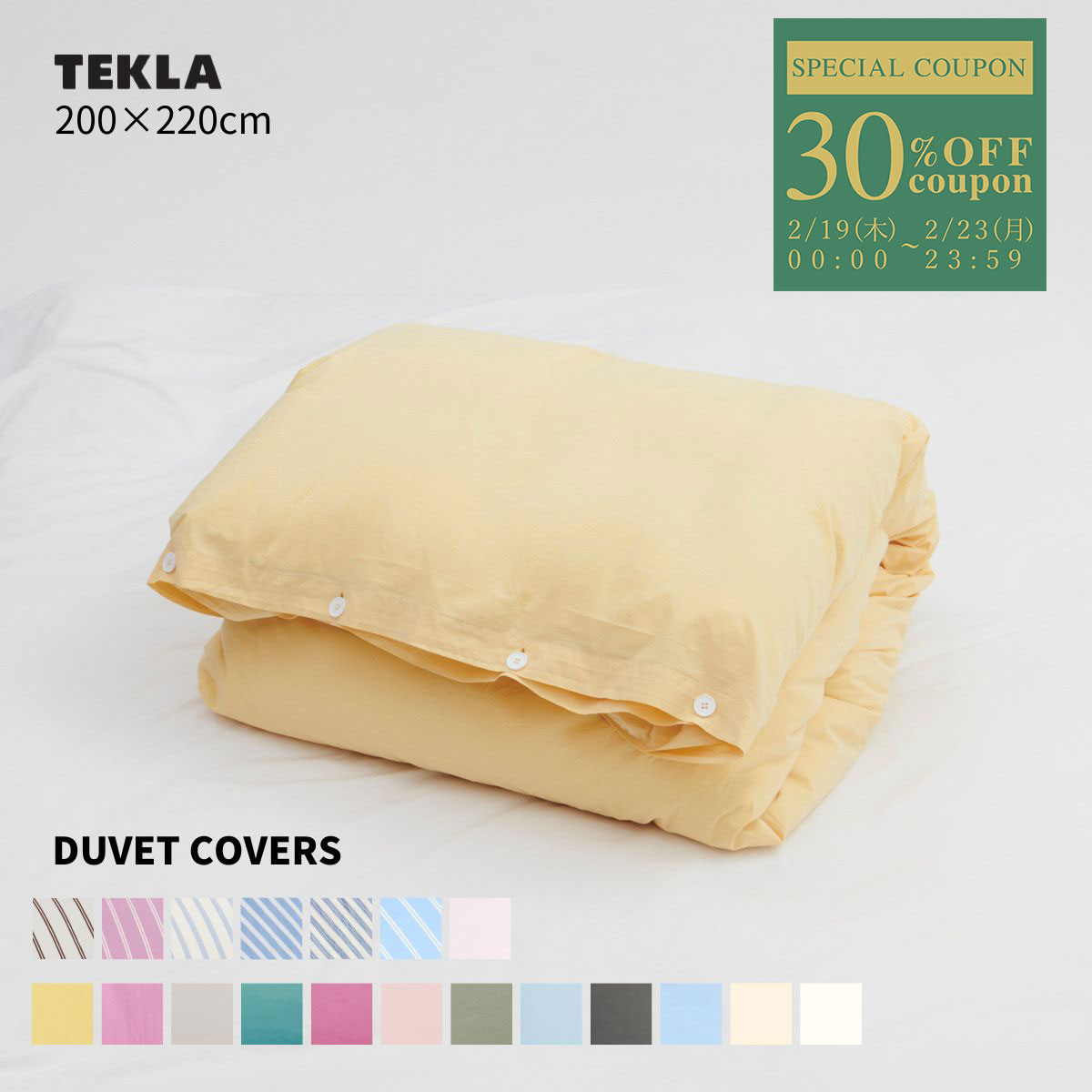 【正規販売店】テクラ TEKLA 掛け布団カバー 200×220 布団カバー 寝具 コットン シンプル おしゃれ 無地 北欧 ブランド 高級 COTTON PERCALE DUVET COVERS