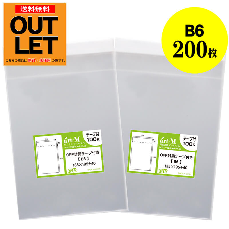 【訳ありアウトレット】透明OPP袋 B6 テープ付 200枚 30ミクロン厚(標準) 135x195+40mm 国産 透明封筒 B6用紙 B5用紙2つ折り用 梱包材