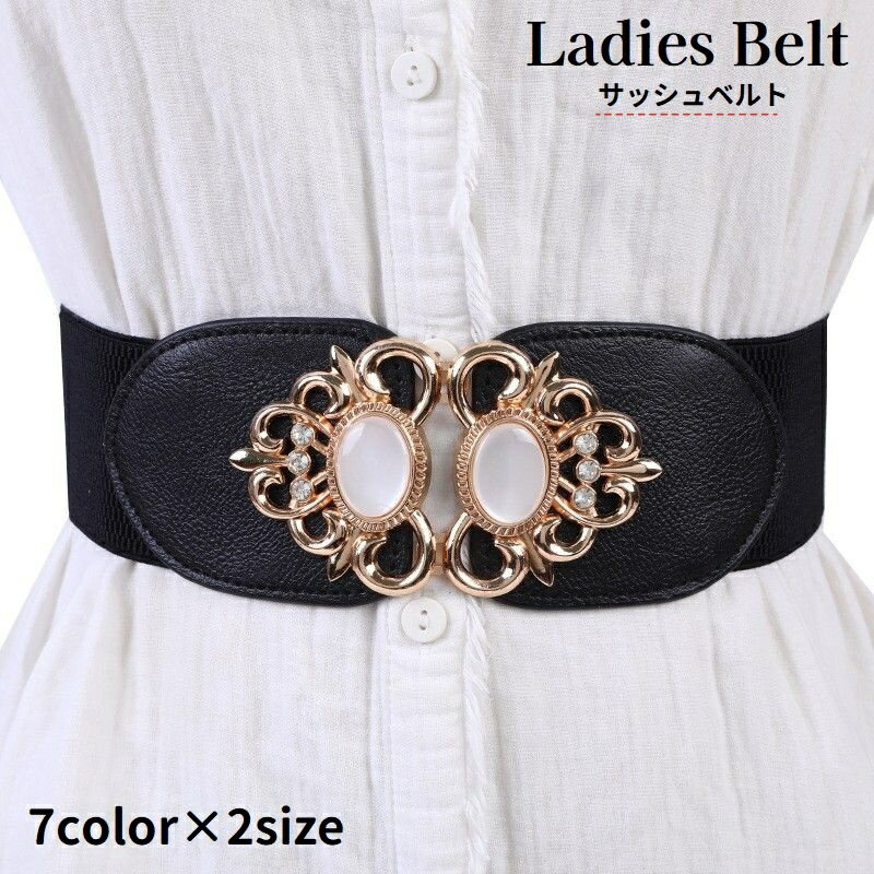 送料無料 サッシュベルト 幅広 レディース 女性用 ワイド 太め レザー調 フェイクレザー ゴム 伸縮 ウエストマーク ラインストーン 細見え エレガント 可愛い おしゃれ お出掛け