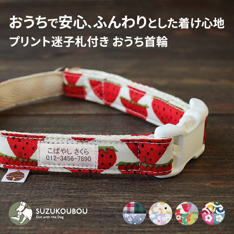 犬 首輪 小型犬 中型犬 軽い 柔らかい 防災 迷子防止 迷子札付き おしゃれ かわいい 名入れ 迷子札 すず工房 SUZUKOUBOU【迷子札付きおうち首輪 Vol.1】