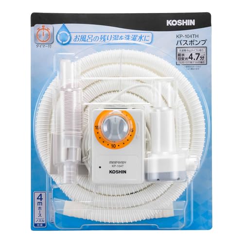 【マラソン最大46倍】工進(KOSHIN) 家庭用バスポンプ AC-100V KP-104JH 4m ホース付 風呂 残り湯 洗濯機 最大吐出量 11L/分 (付属4