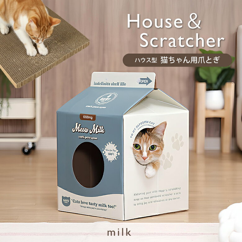 \P10倍&割引クーポン★2/23(月)まで/【送料無料_b】爪とぎ 猫 ハウス 分解できる ミルク かわいい ミルク コンパクト ペットハウス 段ボール 軽量