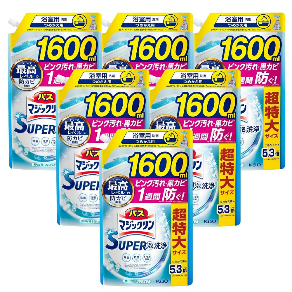 【19日20時〜P5倍&クーポンあり】【2個セット】バスマジックリン SUPER泡洗浄 グリーンハーブの香り 詰替え用 1600ml×2個 洗浄はもちろん、菌由来の汚れも防ぐ!