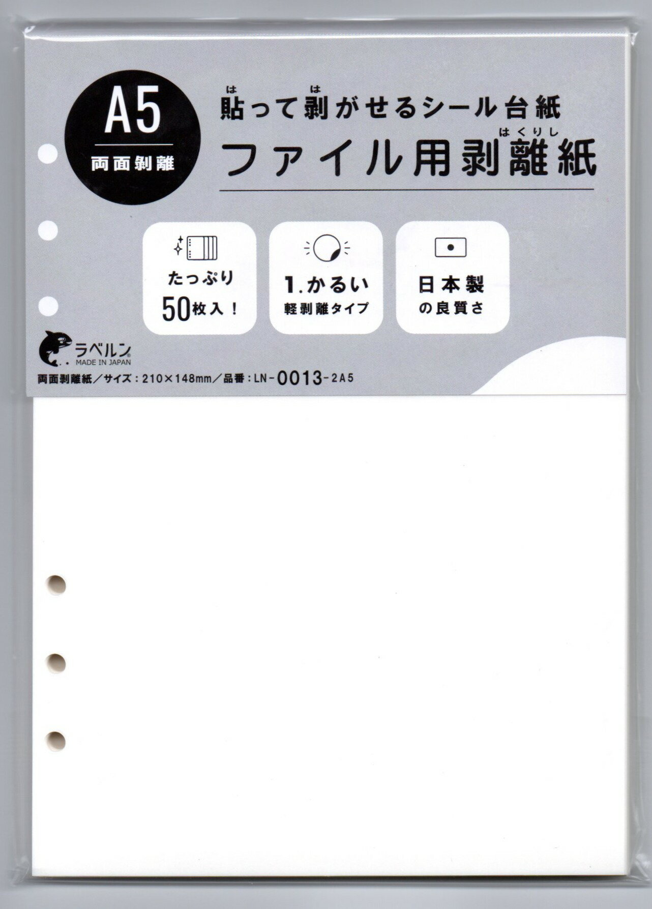 ラベルン A5 210×148mm 50枚入 剥離紙専門店 厚口両面剥離紙 6穴ファイル用 シロ 両面剥離 軽剥離 タイプ 厚み約0.125mm シール ラベルの収集 セパレーター 日本製