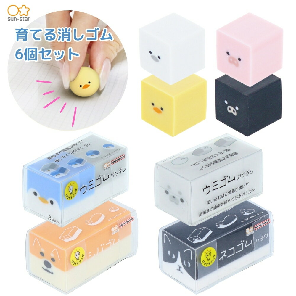 【レビュー特典】サンスター文具 育てる消しゴム 6個セット メール便対応 消しゴム セット 文房具 文具 まとめ買い かわいい 小学生 中学生 高校生 子供 大人 おもしろ キャラクター