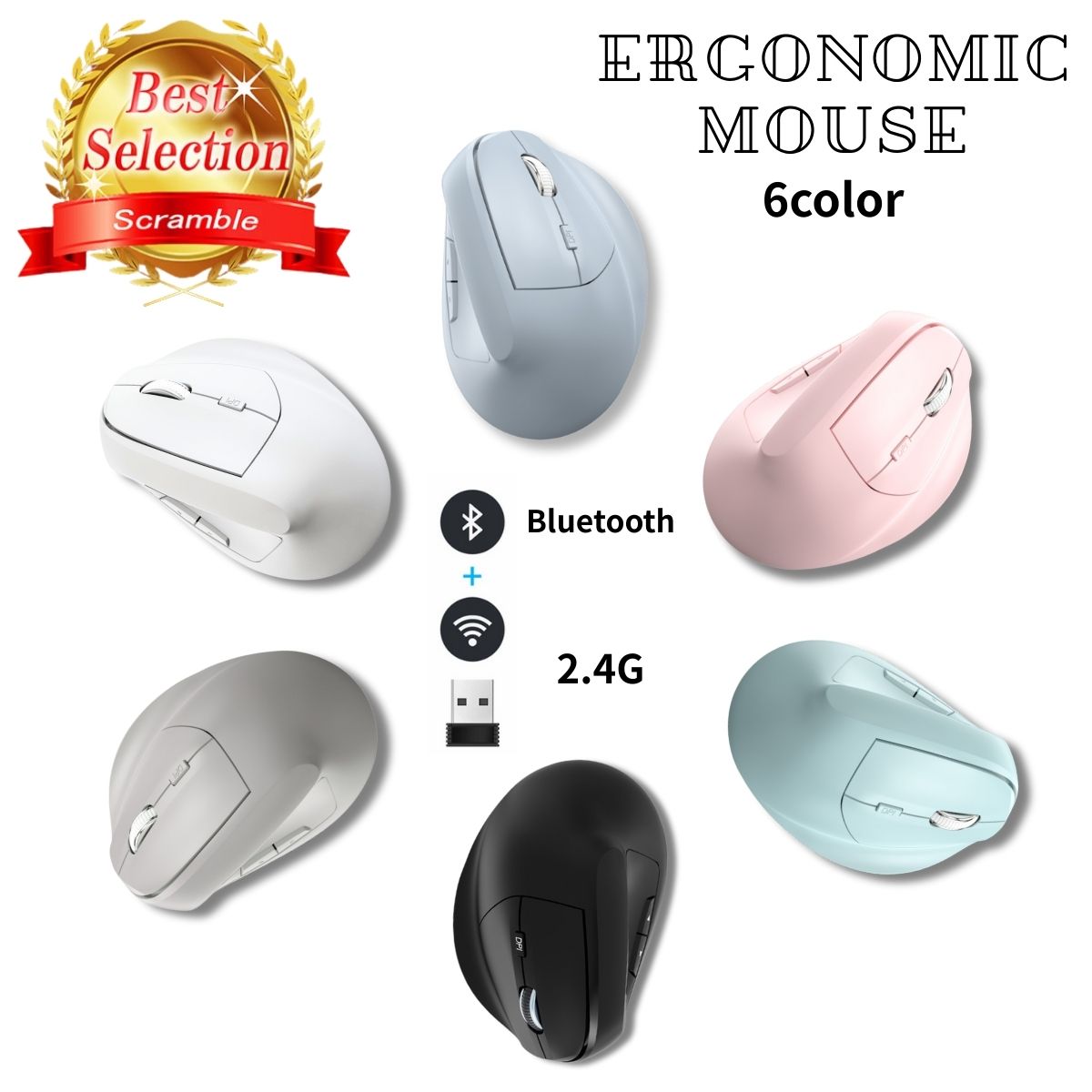 ワイヤレスマウス Qi充電 Bluetooth 2.4GHz ワイヤレス 充電マウス Qi対応 充電式 5ボタン ブルーLED 置くだけ エルゴノミクス 静音