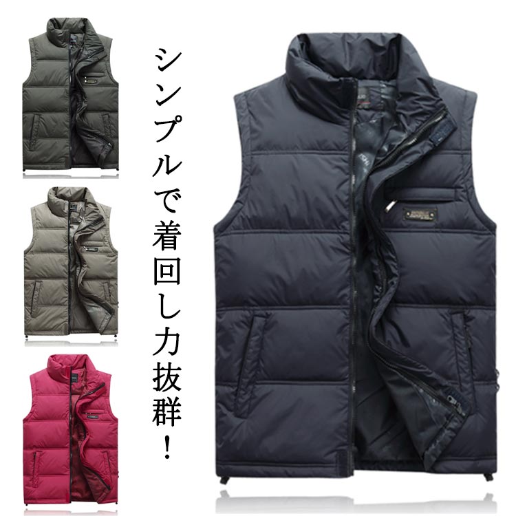 ダウンベスト メンズ 中綿ベスト 男女兼用 秋冬 シンプルで無地ベスト ダウンベスト 中綿ベスト 冬 防寒 おしゃれ メンズ アウター ジップアップ ベスト 保温性 男性 ベスト 軽量 あったか