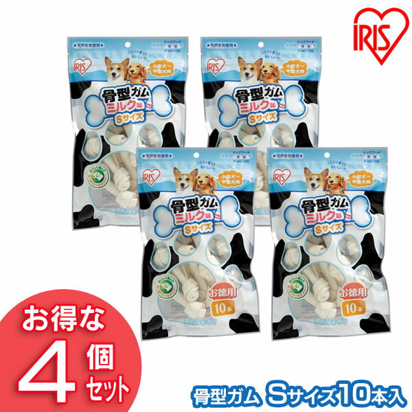 【最大400円OFFクーポン◆要事前取得】【4個セット】犬 ガム 長持ち 犬 おやつ 牛皮骨型ガム(ミルク味 S10本入) P-MG-10S アイリスオーヤマ 犬用 ドッグフード ガム 骨 犬のおやつ
