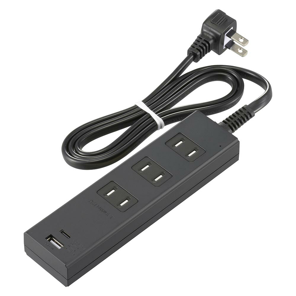 オーム電機 雷ガード付節電タップ 3個口 1m Type-C(PD対応)×1、Type-A×1 ホコリシャッター Lプラグ ブラック(黒) TypeC TypeA USB HSTKU31PD23K