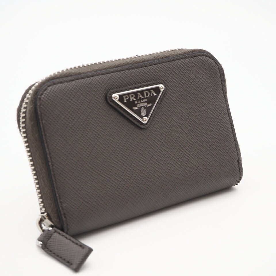 ★3日以内返品可★ 美品 PRADA プラダ サフィアーノレザー サフィアーノトライアングル コインケース 2MM003 コインケース グレージュ サフィアーノ メンズ【中古】