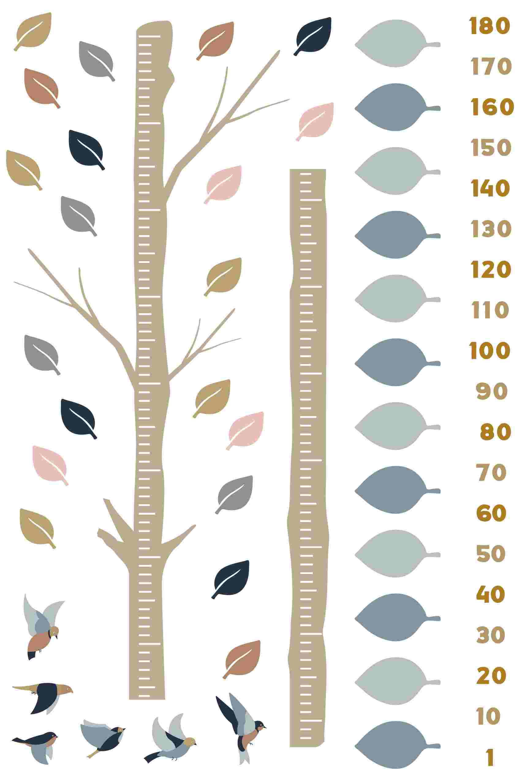 ウォールステッカー 身長計 メモ付き 記念 目盛り 子供部屋 動物 北欧 90×60cm シール式 装飾 おしゃれ 壁紙 はがせる 剥がせる 木 北欧 くすみカラー 032473