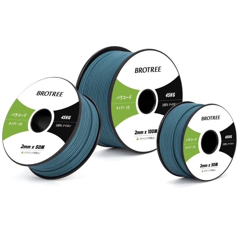 パラコード 2mm 1芯 30m/50m/100m ガイロープ テントロープ 紐 細引き 耐荷重45kg クラフト アクセサリー制作 キャンプ アウトドア用
