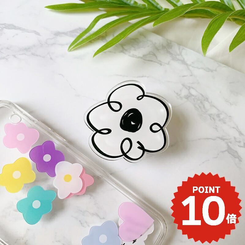 スマホグリップ 韓国 magsafe カードケース かわいい おしゃれ スマホリング グリップトック スマホスタンド マグセーフ スマホホルダー スマホアクセサリー カスタム 花 フラワー モノクロ