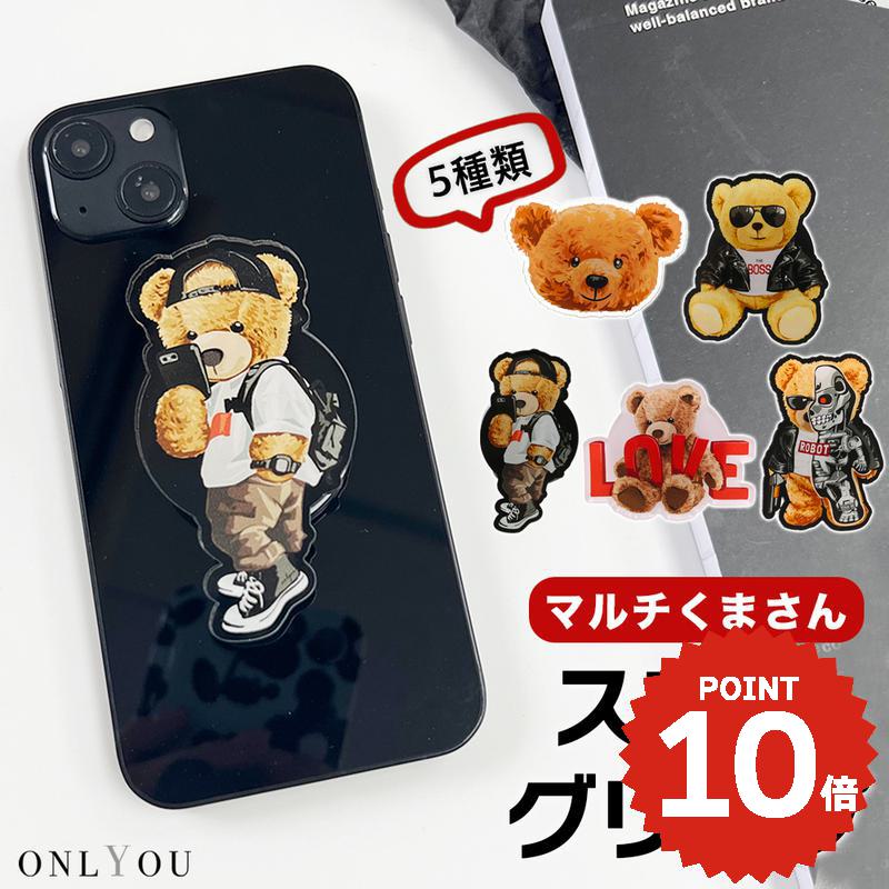 スマホグリップ 韓国 magsafe カードケース かわいい おしゃれ スマホリング グリップトック スマホスタンド マグセーフ スマホホルダー スマホアクセサリー カスタム くま テディベア