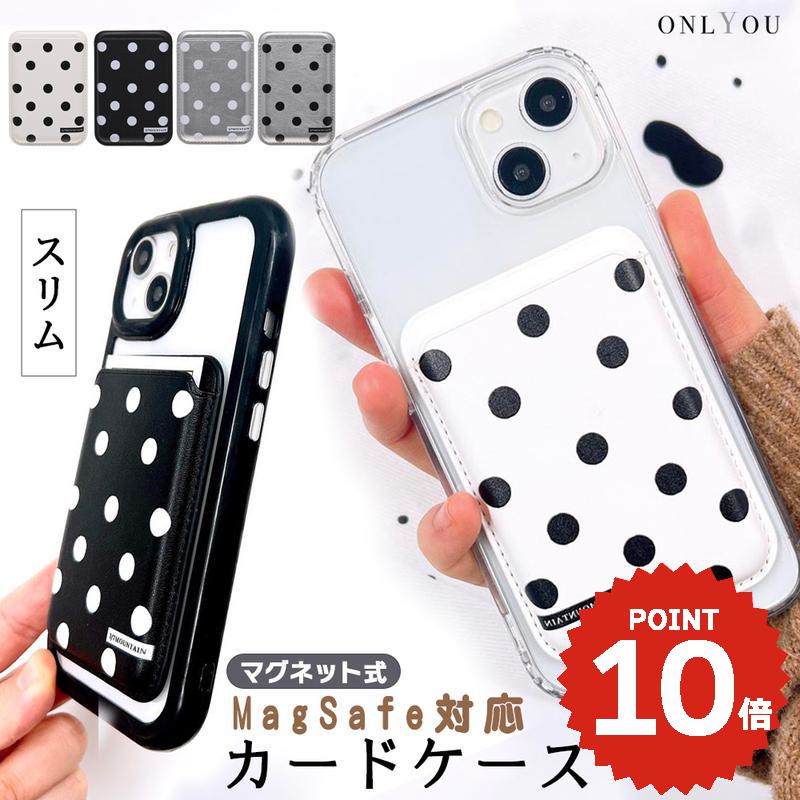 MagSafe対応 カードケース 磁力カードポケット スマホカードケース 磁気カードホルダー カード背面ポケット 簡単収納 ICカード入れ 内蔵磁石 マグネット式 ドット柄 かわいい レディース