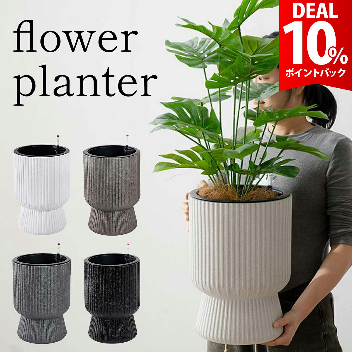 植木鉢 おしゃれ グラスファイバー シンプルスタイリッシュポット UN231-255 8.5号(25.5cm) 鉢底穴有り 大型 軽い 軽量 ファイバークレイ 鉢カバー ホワイト ブラック