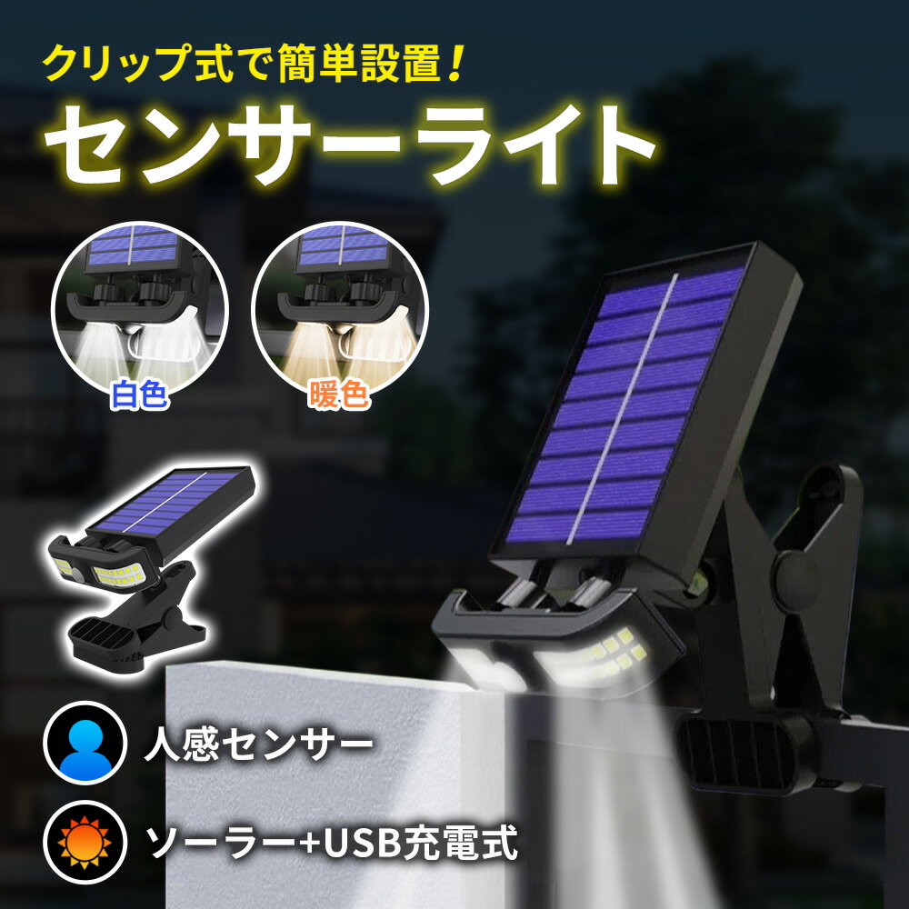 【お買い物マラソン<先着10名>50%OFFクーポン】センサーライト ソーラー ライト 防犯ライト 屋外 クリップ 人感センサー 防水 明るい LEDライト