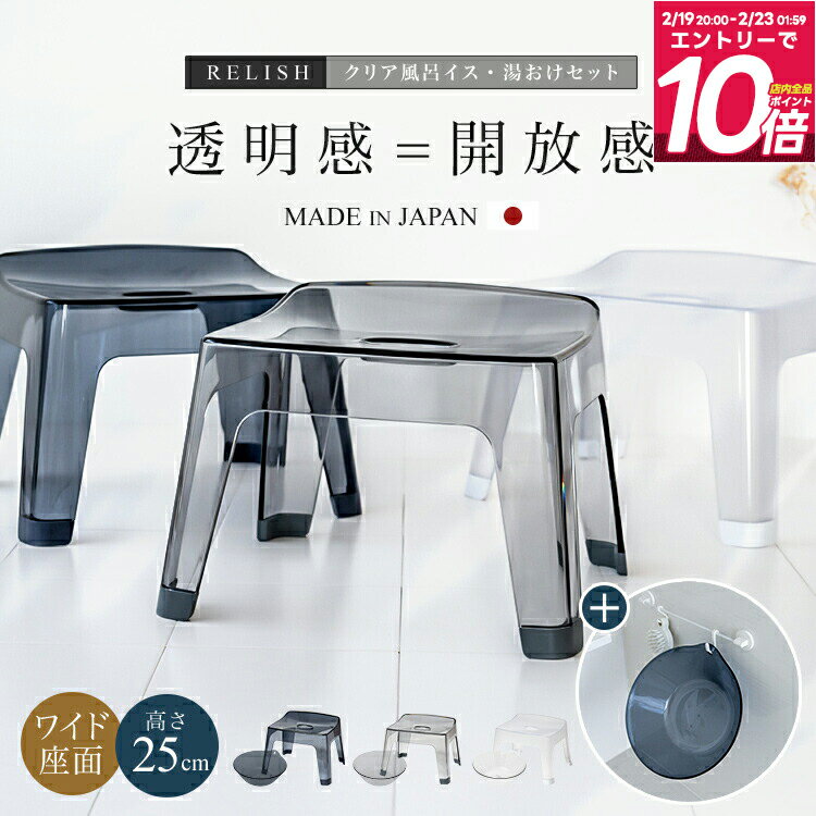 バス用品2点セット バスチェア+マグネット湯おけ 座面高 30cm/35cm/40cm | 風呂椅子 湯桶 抗菌 風呂イス 洗面器 おしゃれ 浮かせる収納 磁石 シンプル