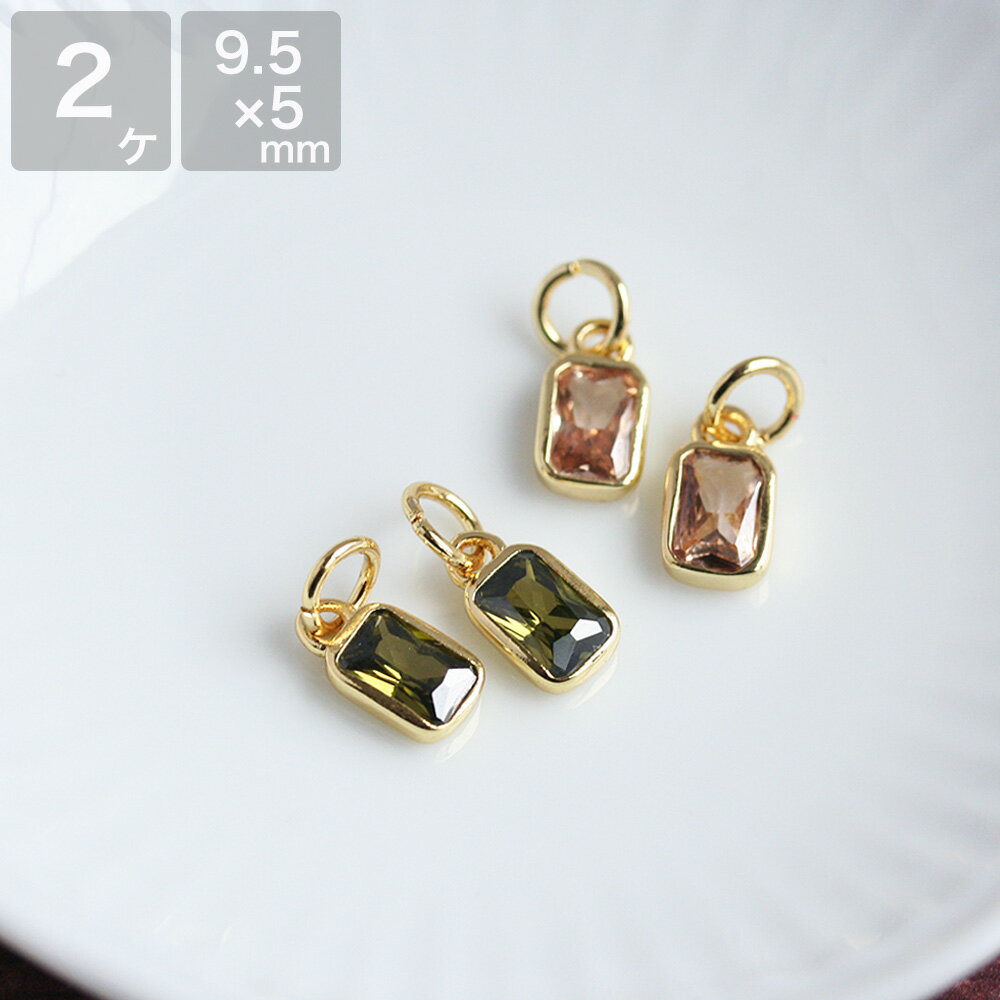【最大15%OFFクーポン】キュービックジルコニア スクエア シャンパン ゴールド オリーブ ゴールド 2個 アクセサリーパーツ ピアス イヤリング 手作り ハンドメイド 材料 素材 四角