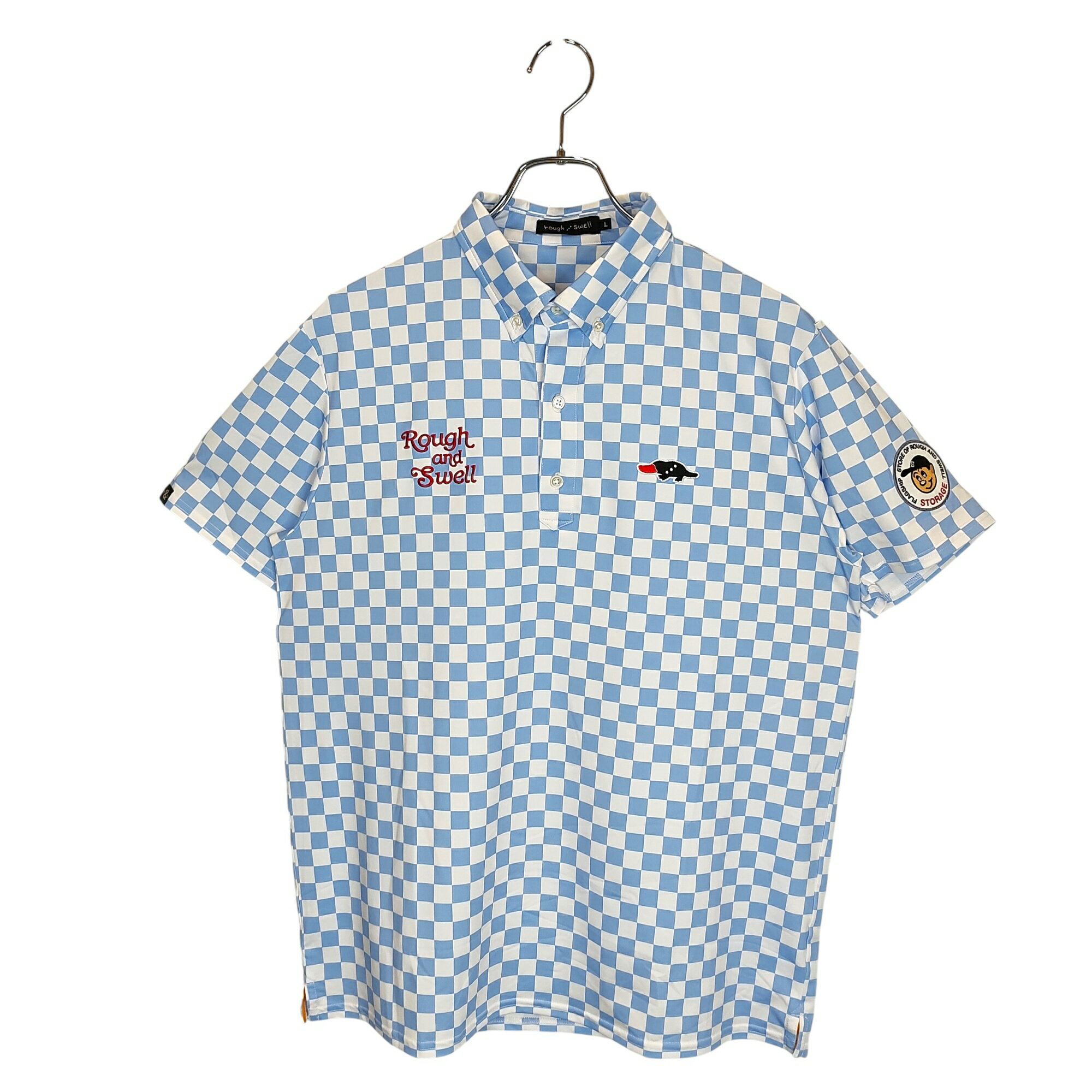 【中古】rough & swell ラフ&スウェル ゴルフ CHECKER POLO チェック柄 半袖 ポロシャツ RSM-24014 L ライトブルー/ホワイト メンズ